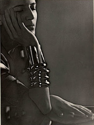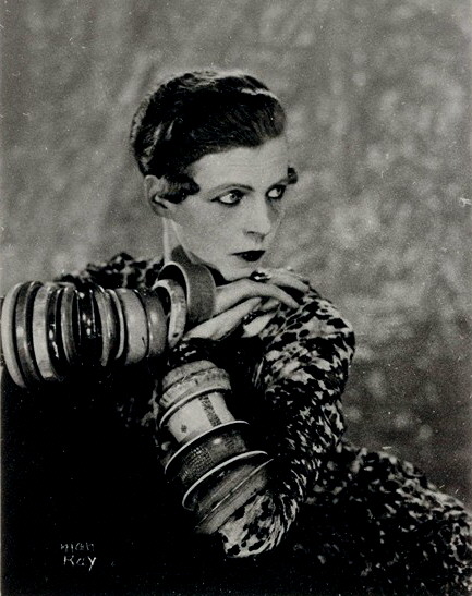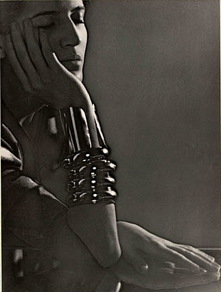 Coco Chanel contribuía diseñando pulseras “bangles” y brazaletes, como este ejemplo de Suzy Solidor, también fotografiada por Man Ray en los años 20: